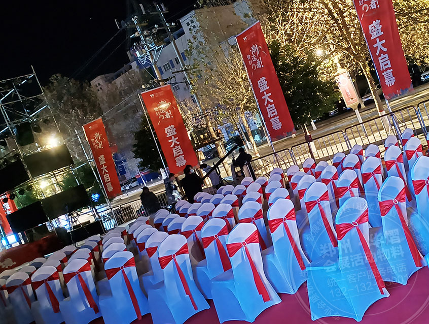 此次鄭州登封萬佳活動華熠選擇白色貴賓椅和紅色蝴蝶結作為點綴,使活動現場