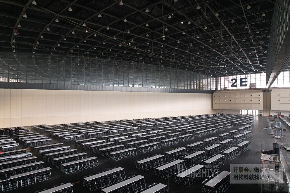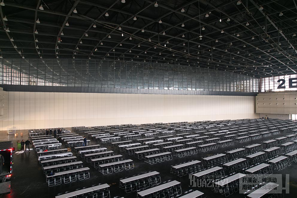 會展中心長條桌折疊椅出租現場直拍,請隨華之熠廠家一起走進鄭州會展中心場館內,看看此次為活動助力提供的長條桌和折疊椅吧。