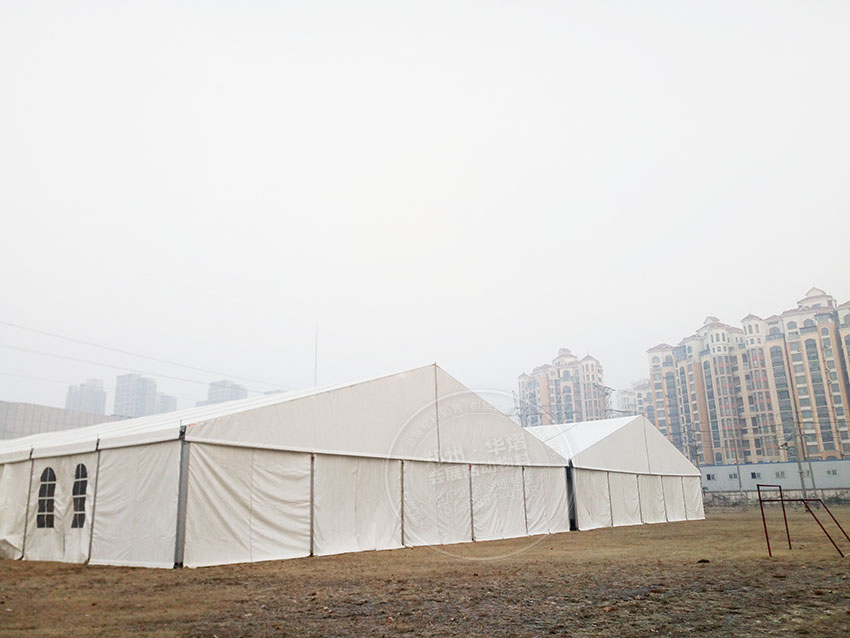 式復雜、面積較大的篷房它其中包含的設施有透明的PVC窗戶、頂部幔簾和