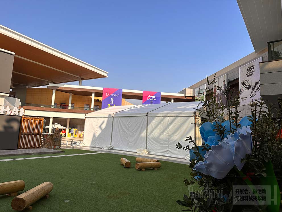 杉杉奧萊購物廣場作為鄭州市內知名的購物中心,時常舉辦各類促銷活動,以吸引更多的消費者。為了滿足購物節期間的特殊需求,商場決定租賃臨時特賣篷房,以擴大銷售區域,提升購物體驗。鄭州華熠公司憑借豐富的經驗和卓越的實力,參與了此次室外篷房的搭建服務。