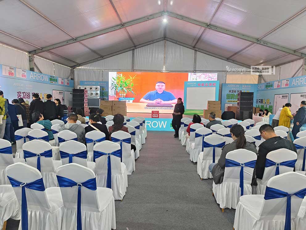 華熠篷房租賃公司憑借多年的行業經驗和豐富的搭建案例,為展銷會量身定制了一套完美的篷房搭建方案。我們提供的篷房不僅設計簡潔大方,與箭牌衛浴的品牌形象相得益彰,還充分考慮到了實用性和安全性。篷房內布局合理,展品陳列井然有序,讓參觀者能夠輕松瀏覽并選購心儀的衛浴產品。